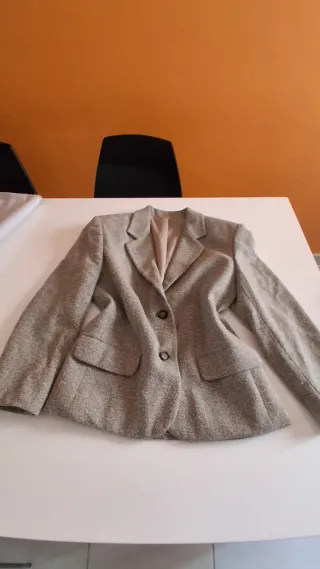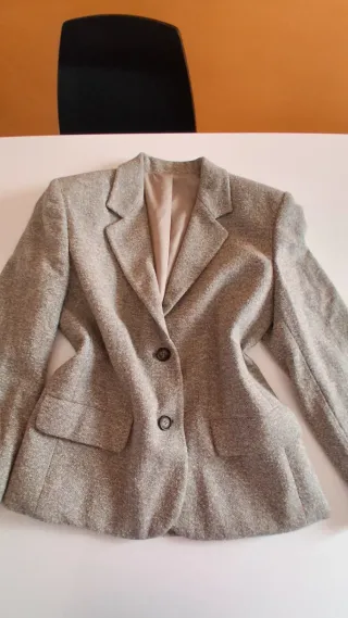 Giacca da donna in stile vintage, un capo versatile per diverse occasioni. 55% lana Taglia 42 italiana. Misure in foto - Tessuto mélange nei toni del beige e grigio. - Chiusura con due bottoni. - Tasche frontali vere con patta.