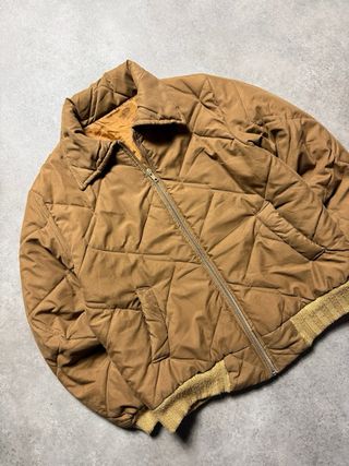 Giacca bomber imbottita in stile vintage. 41 cm spalle 57 cm lunghezza - Design trapuntato a rombi. - Collo a camicia. - Polsini e fondo a costine.