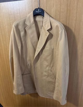 Elegante giacca dal taglio classico, perfetta per completare un look sofisticato. - Design vintage - Doppie tasche anteriori - Chiusura a bottoni Foderata solo alle maniche. 100% cotone. Taglia L/XL. Spalle: 50 Da ascella ad ascella: 47 Vita: 49 Girovita: 100 Girofinale: 125 Lunghezza totale: 79 Lunghezza manica: 63