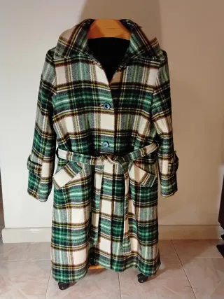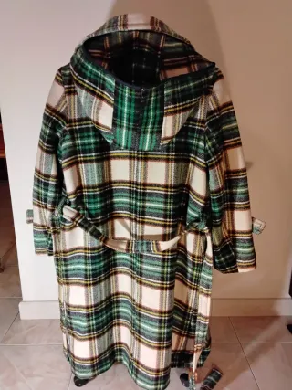Cappottino vintage in pura lana con fantasia tartan confezione sartoriale made in Italy, fodera in raso, cappuccio staccabile con automatici. Veste taglia 44 46 italiana - Fantasia tartan - Materiale: 100% lana - Cintura in vita - Tasche