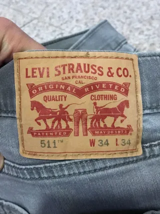 Jeans Levi's modello 511 color grigio con sfumature e lavorazione vintage, indossati poco e tenuti in ottime condizioni adatti per uno stile sportivo casual - Taglia: W34 L34 - Colore: Grigio - Logo Levi Strauss & Co. San Francisco Cal. - Dettaglio Original Riveted Clothing - Immagine brevettata May 20 1873