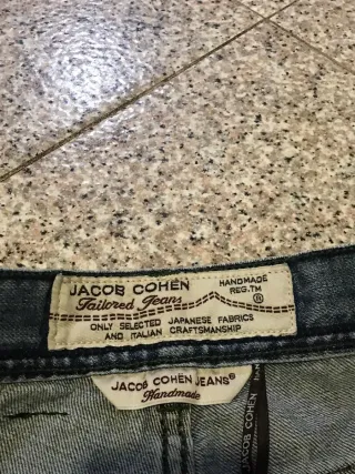 Jeans Jacob Cohen in denim con dettagli e sfumature vintage Made in Italy indossati poco e tenuti in ottime condizioni - Patch Rare Luxury Denim on the back. - Distressed details. - Button closure. - Pocket with embroidered logo.