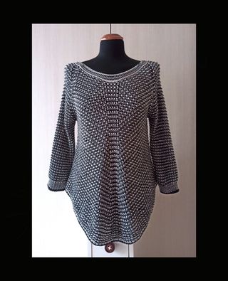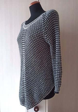 Maglione bianco e nero vintage, fine anni '90/inizio 2000. Maniche poco più lunghe di 3/4. Più lungo davanti e dietro e più corto sui lati. Comodo e largo, non ha più la parte di etichetta con la taglia, ma può essere taglia unica in base a come si preferisce che vesta addosso. ➡️Ci sono le misure da controllare nelle ultime tre foto.