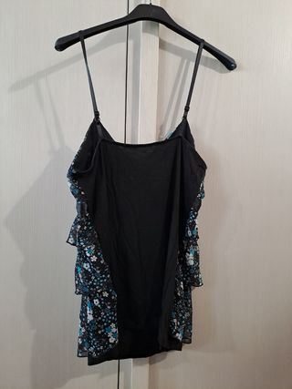 Top vintage a strati con spalline sottili, fiori e nastro sotto il seno. Lunghezza 63 cm, seno 34 cm, ascelle 38 cm.