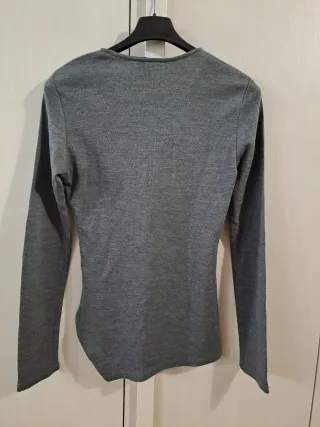 Maglietta maniche lunghe vintage con orlo assimetrico made in Italy. Lunghezza 62 cm, maniche 61 cm, spalle 36 cm, ascelle 39 cm.