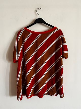 Vendo Bellissima maglia a righe della marca Benedetta Valeri, made in Roma. La taglia è una M italiana (corrispondente a una 3). - Modello a maniche corte. - Colori: rosso e marrone. - Tessuto leggero e fresco. - Ottime condizioni. -Misure disponibili nelle foto.