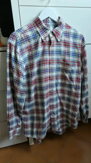 Camicia Levi's originale a quadri (rosso/blu/ crema) con bottoni al colletto e iconiche toppe blu sui gomiti. Lo stile è vissuto e autentico. Segnalo alcuni difetti (vedi foto): due piccoli fori vicino ai gomiti, una riparazione sulla schiena e una scucitura sul polso sinistro. Perfetta per un look grunge o da sistemare facilmente. Taglia S Lunghezza ~76cm, Spalla ~52cm. #levis #levisvintage #camiciaquadri #grunge #vintage #secondhand #shirtdesign #toppe #streetwear