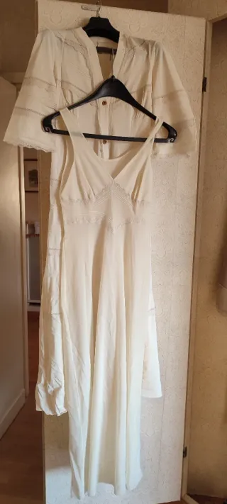 Set vintage composto da camicia da notte e vestaglia, risalgono al 1970. - Dettagli in pizzo. - Tessuto leggero ma non eccessivamente trasparente, elegante e sensuale. Veste una 42 italiana ossia 38 francese, s/m La camicia è lunga 130, sotto seno 40cm circa (essendo morbido si adatta) La vestaglia dietro presenta una leggerissima ombra rosata dovuta probabilmente agli anni passati in un cassetto. È nell'ultima foto, si nota appena se si guarda bene da vicino