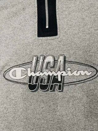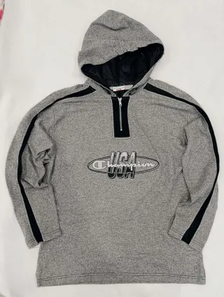 Felpa con cappuccio e zip corta, un capo vintage che non passa mai di moda. - Design con logo Champion USA. - Dettagli a contrasto sulle maniche. - Cappuccio foderato in mesh.