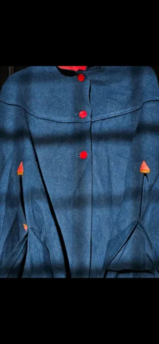 Mantella / giacca-poncho vintage anni 80 firmata Rivar Confections, Made in Italy, realizzata in tessuto caldo e strutturato (probabile misto lana). Colore blu con interno rosso a contrasto e bottoni decorativi frontali. Taglio sartoriale ampio, tipico delle mantelle d’epoca, perfetto per layering e look statement. 📌 Taglia in etichetta: 70/30 (vintage). Modello poncho con vestibilità ampia, adatta indicativamente da S a XL 🔹 Condizioni: buone / molto buone, normali segni del tempo compatibili con l’età. 🧼 Pulito e pronto da indossare. 📦 Spedizione rapida.