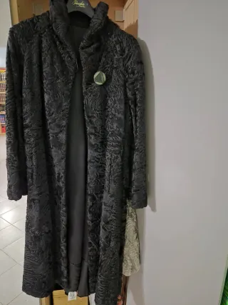 Elegante cappotto in astrakan. Veste taglia 46/48 Vintage Perfetto stato - Lunghezza lunga. - Collo alto. - Chiusura con bottone. - Dettaglio spilla decorativa.
