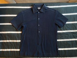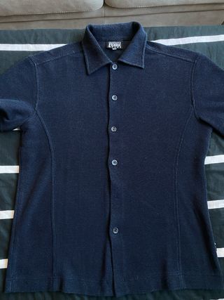 Eleva il tuo stile con questa splendida polo knit firmata Gianfranco Ferré Jeans. Un pezzo d'archivio dal design minimale e sofisticato, caratterizzato da una raffinata trama a nido d'ape in blu notte profondo. • Dettagli: Chiusura integrale con bottoni logati, colletto classico e cuciture strutturali a vista che valorizzano il taglio. • Taglia: L (ottima vestibilità). • Condizioni: Ottime condizioni vintage, tessuto impeccabile. Un must-have per amanti del Quiet Luxury e del design anni '90. Made in Italy di altissima qualità. #gianfrancoferre #ferre #vintage #90s #archival #madeinitaly #luxury #quietluxury #oldmoney #knitwear #pol