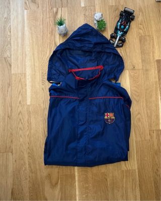 Giacca sportiva con cappuccio del FC Barcelona, un capo vintage perfetto per i tifosi. - Logo del club ricamato sul petto. - Dettagli a contrasto rossi. - Chiusura con zip.