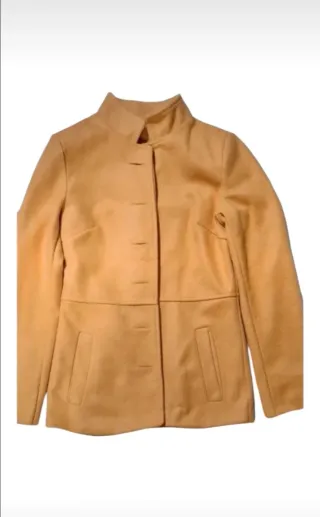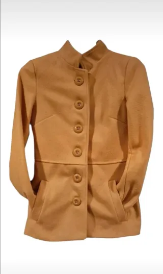 Elegante cappotto vintage in stile caban, perfetto per completare il tuo look. - Colore giallo ocra - Design classico con bottoni. - Tasche frontali. - Collo alto. Poliestere/Viscosa