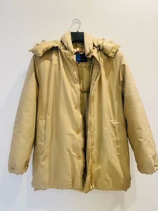 Giaccone Moncler originale, modello vintage risalente agli anni 2000. - Cappuccio imbottito. - Chiusura con bottoni e zip. - Tasche frontali. - Polsini elasticizzati.