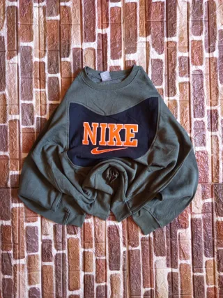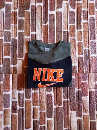 Aggiungi un tocco unico al tuo armadio con questa felpa Nike "Reworked", un pezzo artigianale creato dall'unione di capi originali. Design d'impatto con contrasti cromatici decisi, ideale per chi cerca l'esclusività del custom vintage. Brand: Nike (Reworked) Colori: Verde oliva scuro e Nero. Dettagli: Grande logo "NIKE" con Swoosh ricamato in arancione vibrante e profilo bianco su base nera. Costine su collo e polsini in tinta verde. Taglia: Etichetta indica XL (ragazzo/Y), ma veste come una S/M da adulto (controlla le misure per sicurezza). Condizioni: Ottimo stato, tessuto caldo e confortevole, ricami perfetti.