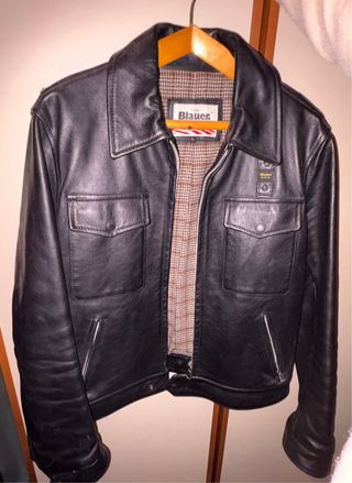 Giacca in pelle Blauer USA da uomo, un capo dal fascino vintage. - Design classico con colletto. - Chiusura con zip. - Due tasche frontali con patta e bottone. - Fodera interna a quadri.