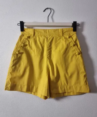 Pantaloncini vintage in cotone a vita alta e leggermente svasati di colore giallo limone 🍋, no fluo ( colore reale leggermente più chiaro) - Tessuto in cotone leggero - Vita alta per un comfort ottimale. - Dettagli con bottoni rivestiti ai lati. - Tasche laterali oblique - Zip posteriore in metallo - Verificare misure, vestono poco #shortsestivi #vitaaltadonna #giallo #shortsvintage#qualitaitaliana#marinayachting#,cotoneleggero#retrostyle