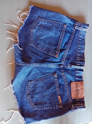 Shorts in denim, a classic blue color. - Frayed hem detail. - Classic five-pocket design. - Leather brand patch on the back.