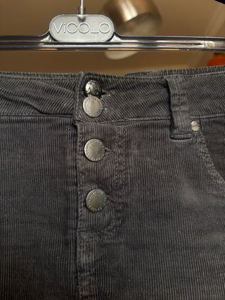 Gonna corta in velluto a micro-coste firmata Gaudì Black Issue. Il colore è un bellissimo grigio antracite/fumo, molto facile da abbinare sia in inverno con collant coprenti che nelle mezze stagioni. • Dettagli: Chiusura frontale con bottoni logati a vista, tasche classiche modello jeans e tasche posteriori con placchetta metallica "Gaudì Black" originale. • Materiale: Velluto di cotone leggermente elasticizzato (2% elastane) per una vestibilità super comoda. • Taglia: 40 italiana (veste regolare). • Condizioni: Ottime, velluto ancora morbido e bottoni perfettamente saldi. La pacca metallica sul retro è leggermente scolorita. Ideale