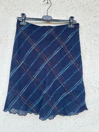 Gonna blu vintage a righe incrociate