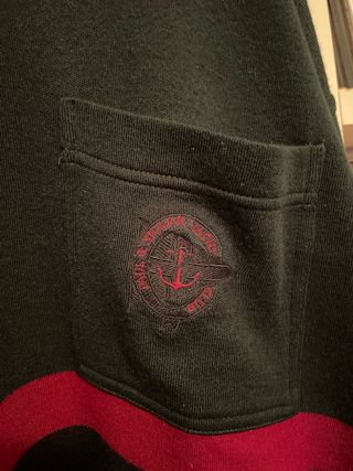Felpa da uomo vintage firmata Legea, Fashion Line. Bello il modello sportivo e i colori. Firma del marchio all' altezza del petto. Chiusura con cerniera frontale e cursore firmato. Due tasche in vita. Presenta delle piccolissime macchioline all' altezza del collo ( visibili in foto). Misure: - Spalle: 41 cm - Ascella-Ascella: 47 cm - Lunghezza: 69 cm -Maniche: 62 cm - Design a blocchi di colore con dettagli grafici. - Zip frontale. - Collo alto.
