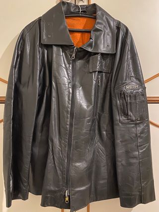 Giubbotto vera pelle Polizia vintage nero (L/XL)