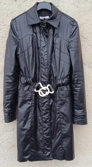 Cappottino da donna vintage firmato Versace Jeans Couture. Bello il modello con cintura ad incastro in vita. Chiusura con bottoni a pressione. Leggermente imbottito. Presenta la parte metallica della cintura leggermente graffiata e un lato della tasca scucito ( visibile in foto). Misure: - Spalle: 43 cm - Ascella-Ascella: 49 cm - Lunghezza: 96 cm -Maniche: 65 cm