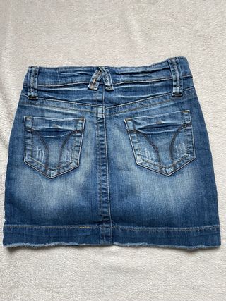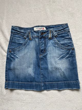 Gonna in denim stile Y2K, perfetta per un look casual e alla moda. - Design a vita bassa. - Effetto used e strappi. - Tasche anteriori e posteriori.
