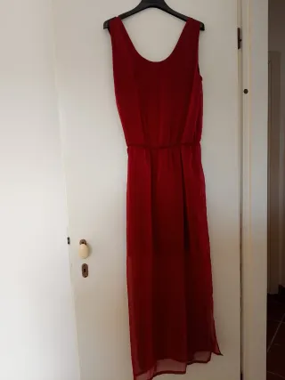 Elegante abito lungo color vinaccia, perfetto per ogni occasione. - Scollatura con dettaglio incrociato. - Vita elasticizzata. - Tessuto leggero e fluttuante. - Spacco laterale.
