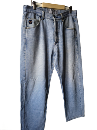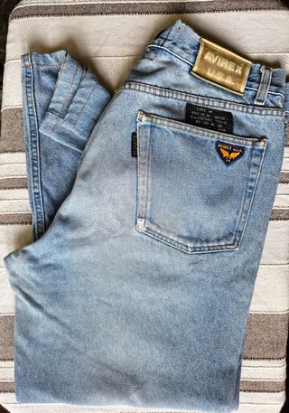 Jeans - vaqueros iconico Avirex U.S.A. originale, taglia W34. Vestibilità Loose & Cropped, perfetto anche unisex per chi ama fit morbidi e strutturati 🔥 Utilizzati negli anni '80 e '90 da paninari, hip hop streetwear e topgun style! Misure: vita 40 cm, cavallo 31 cm, lunghezza totale 97 cm (length 66cm). Made in Italy Denim consistente e di carattere, lavaggio chiaro Lavato e igienizzato 🧼 Dettagli: • Fit Loose & Cropped • Struttura robusta • Condizioni ottime ✨ • loghi ricamati Ideale per outfit street, vintage. Spedizione in 24 h💭 Dubbi? Chiedi info! 🧾 Attività professionale