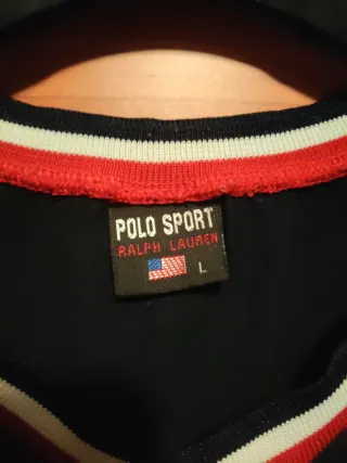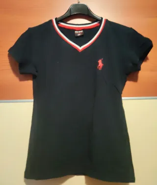 ✨T-shirt Polo Sport Ralph Lauren vintage✨. - Colore blu navy. - Logo pony rosso ricamato sul petto. - Scollo a V con bordi a contrasto bianco e rosso.