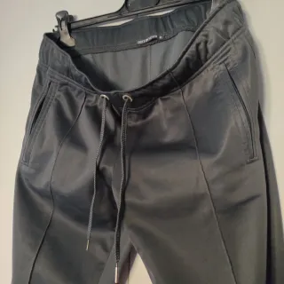 Pantaloni da tuta da donna felpata Terranova. - Tessuto liscio e lucido. - Vita elasticizzata con coulisse. - Tasche laterali. - Design a gamba dritta. Zip di una tasca rotta