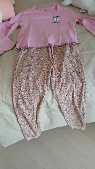 Set pigiama per ragazza composto da maglia a maniche lunghe e pantaloni lunghi. - Maglia rosa con stampa Heart Breaker. - Pantaloni con fantasia di orsetti. - Bordi con volant.