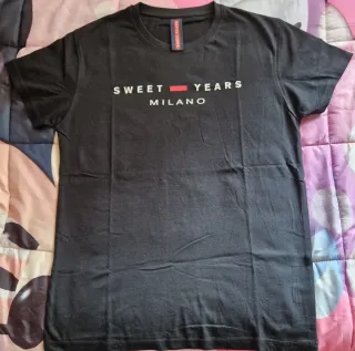 Maglietta da uomo con logo. 100x100 cotone Lunghezza cm 74 da ascella ad ascella cm 52 larghezza spalle cm 66 - Logo Sweet Years Milano stampato sul davanti. - Etichetta Sweet Years sul colletto.