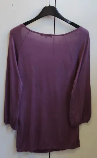 Maglia in poliestere a maniche lunghe con classico motivo a righe. - Girocollo. - Orlo arrotondato con spacchi laterali polso con bottoni in metallo color oro. Lunghezza cm 64, manica 3/4 lunghezza cm 34, spalle cadenti cm 56, da ascella ad ascella cm 53. Come nuova