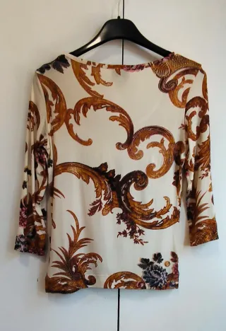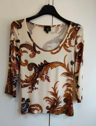 #Just Cavalli Blusa/top a maniche da donna,in ottime condizioni, taglia XS/S 🦢💫🌴 Questa blusa/maglietta/top a maniche lunghe è una maglietta molto particolare perché sul davanti ha dei disegni ma con modello elegante, e rende questo capo semplicemente perfetto🦢💫 Leggera e adatta per tutti i tipi di outfit.🔝🦢