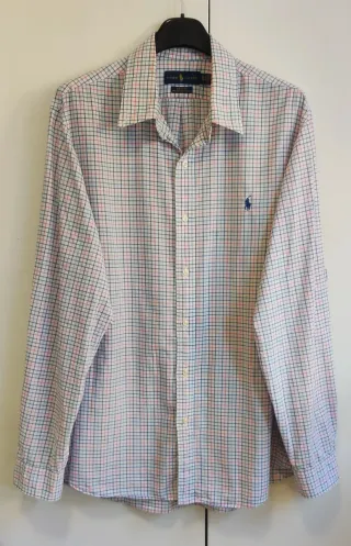 Camicia a quadri da uomo Polo Ralph Lauren, in ottime condizioni. - Fantasia a quadri multicolore su fondo bianco. - Logo del cavallino blu ricamato sul petto.l - Colletto classico. - Chiusura con bottoni.