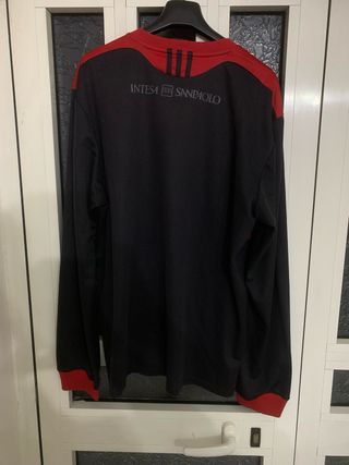 Maglia a maniche lunghe con scollo a V. - Logo Adidas e stemma Milan sul petto. - Logo D&G Junior stampato. - Inserti rossi sui fianchi e sui polsini.