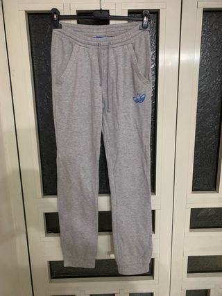 Comoda tuta Adidas in tessuto grigio, perfetta per il tempo libero. - Logo Adidas blu sul lato. - Tasche laterali. - Coulisse in vita per una vestibilità personalizzata.