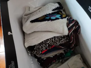 Lotto composto da 34 capi di abbigliamento. - Vari capi con fantasie diverse. Preferisco vendere tutto insieme e di persona