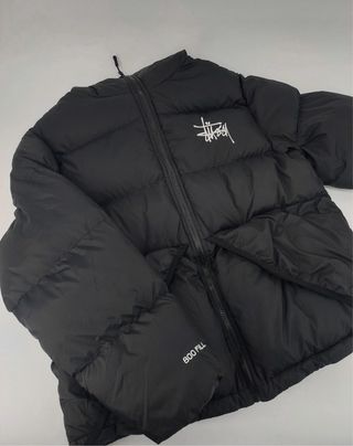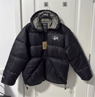 Chaqueta acolchada Stussy en color negro, talla M. Viene con etiquetas. - Diseño acolchado. - Capucha integrada. - Cierre de cremallera frontal. - Cordones ajustables en el bajo.