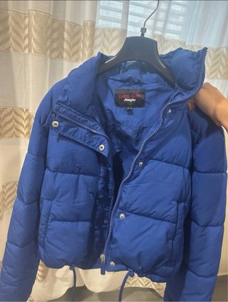 Bomber imbottito di colore blu. - Collo alto - Maniche lunghe - Chiusura con zip - Tasche laterali - Coulisse sul fondo