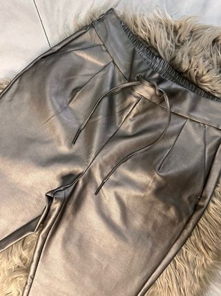 Pantaloni eleganti con un tocco moderno. - Effetto pelle lucida. - Vita elasticizzata con coulisse. - Tasche laterali. - Vestibilità comoda.