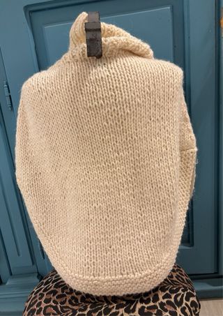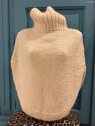 Elegante poncho in maglia con collo alto. Un capo versatile e caldo, perfetto per aggiungere un tocco di stile al tuo guardaroba. - Lavorazione a maglia. - Design a poncho. - Collo alto avvolgente.