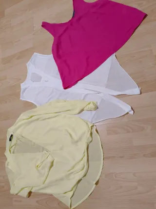 Il set è composto da 3 maglie bluse particolari: -Blusa fucsia stile crop top morbida, by Primark. Tg. 42-M, misure spalle circa 45cm, lunghezza 55cm. -Blusa bianca Made in Italy, si può legare a fiocco alla fine, semi-trasparente. Tg. S/M, misure spalle circa 45, lunghezza 65. -Blusa gialla by Zuiki, si può indossare anche come semplice coprispalle. Tg. M, misure spalle 40cm, lunghezza 58cm. Pezzi vendibili anche separatamente a prezzi diversi. #vinteditalia #estate #pantaloncini #jeans #femme #shorts #vintedfrance #vintedspain #vintedcloset #vintagestyle #fashion #chic #vintage #summer #winter #autumn #spring #indie #hipste