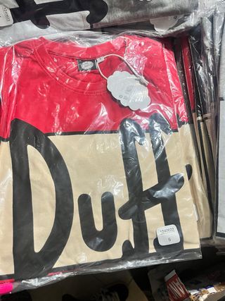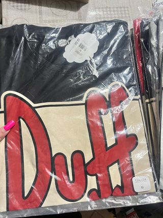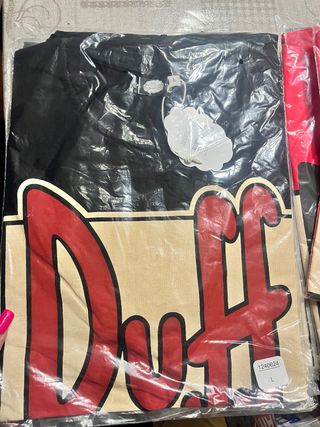 Maglietta nera con logo Duff dei Simpson. Un capo iconico per gli appassionati. - Logo Duff rosso su sfondo beige. - Design classico. - Taglia S.