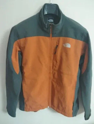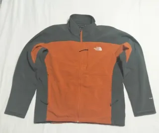 Giubbotto The North Face in taglia L, con una combinazione di colori arancio e grigio. - Zip frontale. - Tasche con zip. - Logo The North Face sul petto.