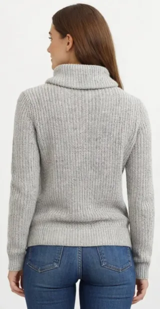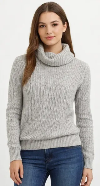 Maglioncino a coste inglesi. - Morbido al tatto. - Collo alto. - Maniche lunghe. Misure 41 × 57 Maglia da donna con dolcevita, ideale per un look casual e confortevole. Presenta maniche lunghe e una vestibilità ampia, perfetta per essere indossata durante le giornate più fresche. La lavorazione a costa inglese aggiungono un tocco di stile unico. Perfetta per occasioni quotidiane, si abbina facilmente a jeans o pantaloni per un outfit versatile e alla moda. La modella è alta 1,78 e indossa la taglia S.