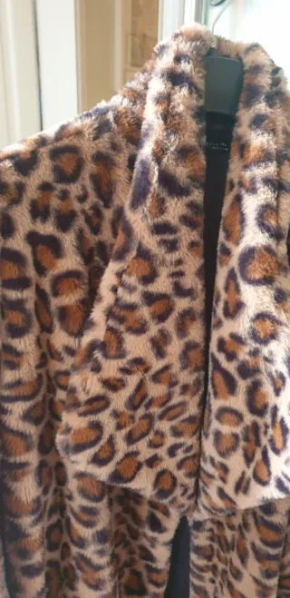 Morbida pelliccia ecologica con stampa leopardata. - Design aperto senza chiusure. - Maniche lunghe. - Lunghezza che copre i fianchi.
